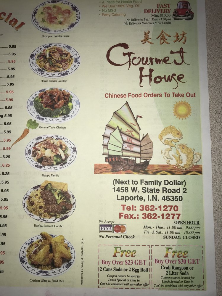 Introducing the menu of Gourmet House Chinese, located in the heart of La Porte, IN, this eatery shines with its authentic Chinese cuisine. Renowned for both its takeaway and delivery options, it caters to families, groups, and individuals craving delightful meals any time of the day.